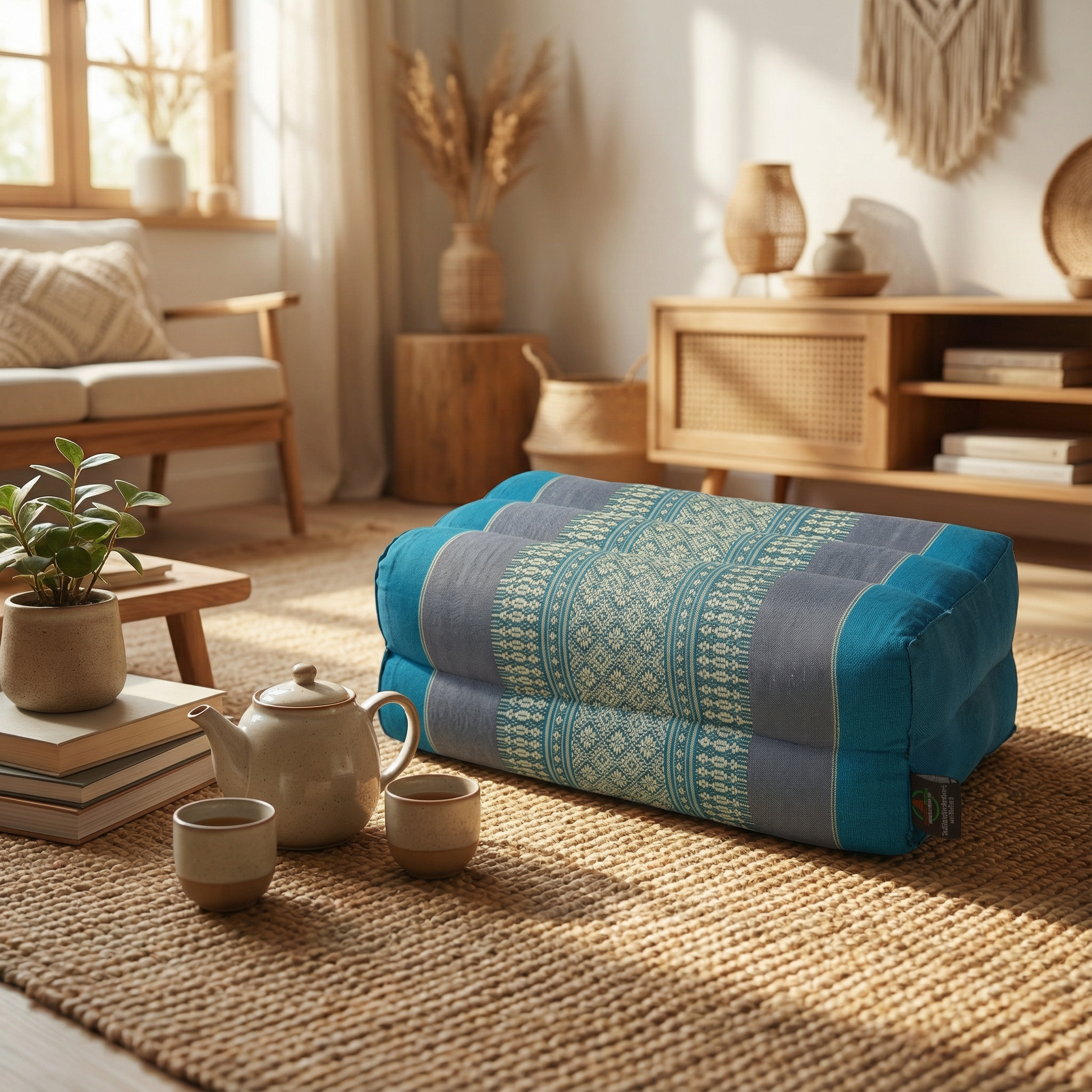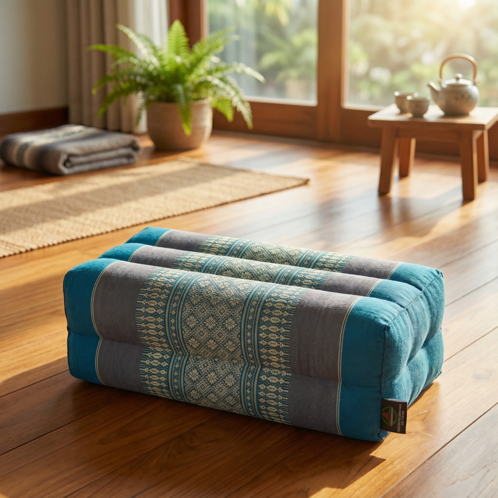 Yoga- und Meditationskissen mit Kapokfüllung (35 x 15 x 10 cm). Diese Kissen sind in verschiedenen Farben erhältlich und eignen sich zum Meditieren oder als Stützkissen. Durch die Kapokfüllung ist das Kissen sehr atmungsaktiv und formstabil.